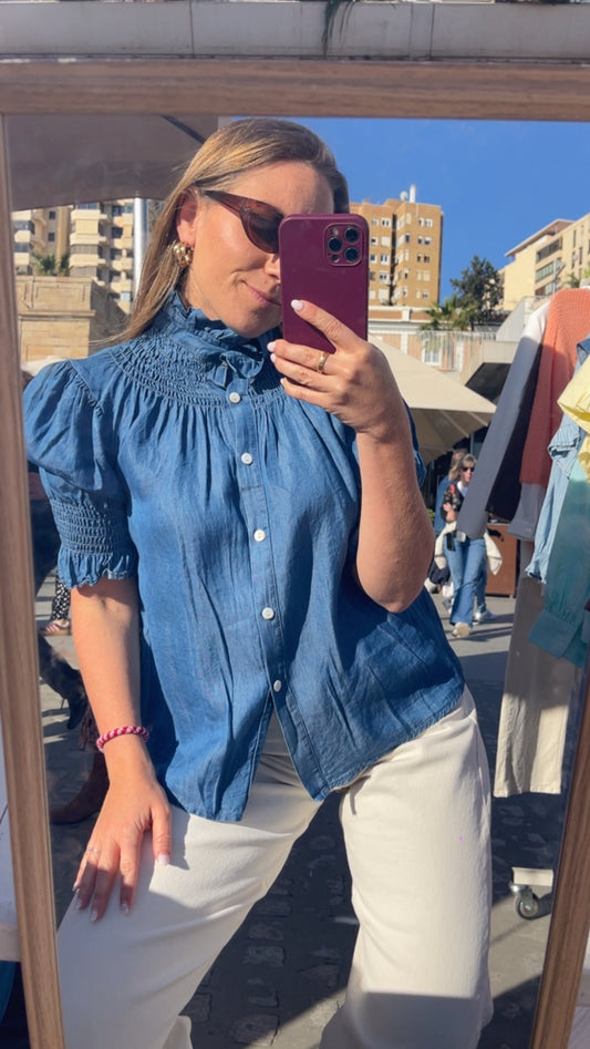 Blusa cuello engomado denim