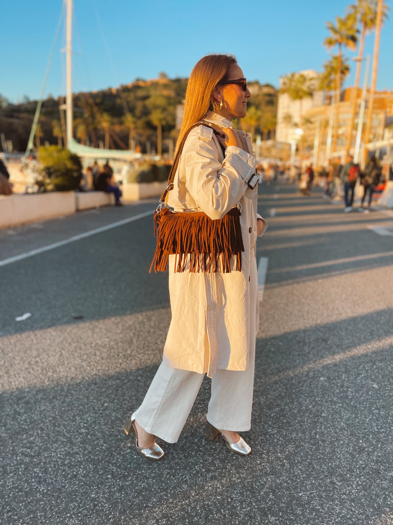 Bandolera flecos piel