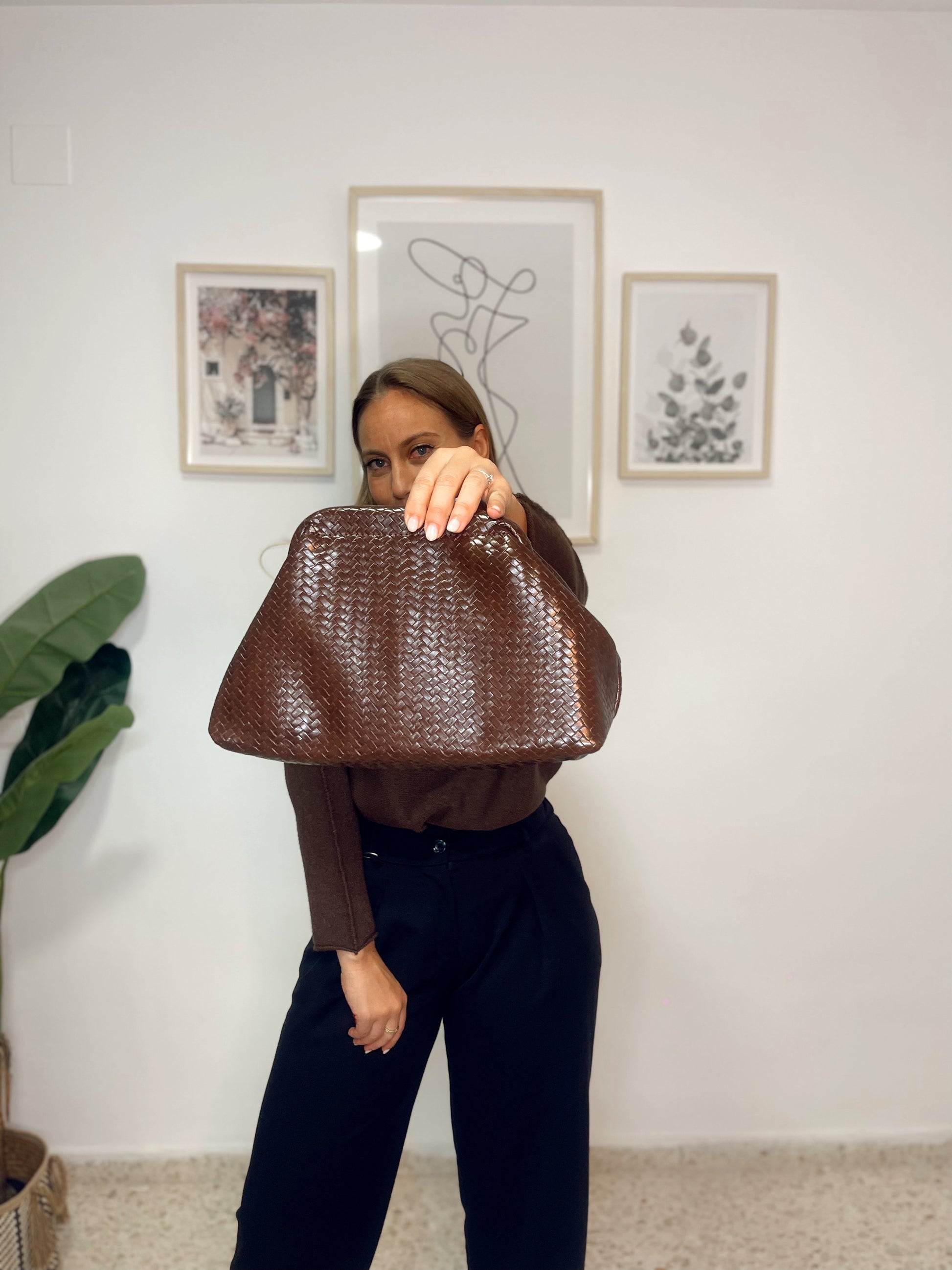 Bolso mano trenzado marrón/ con opcion de bandolera
