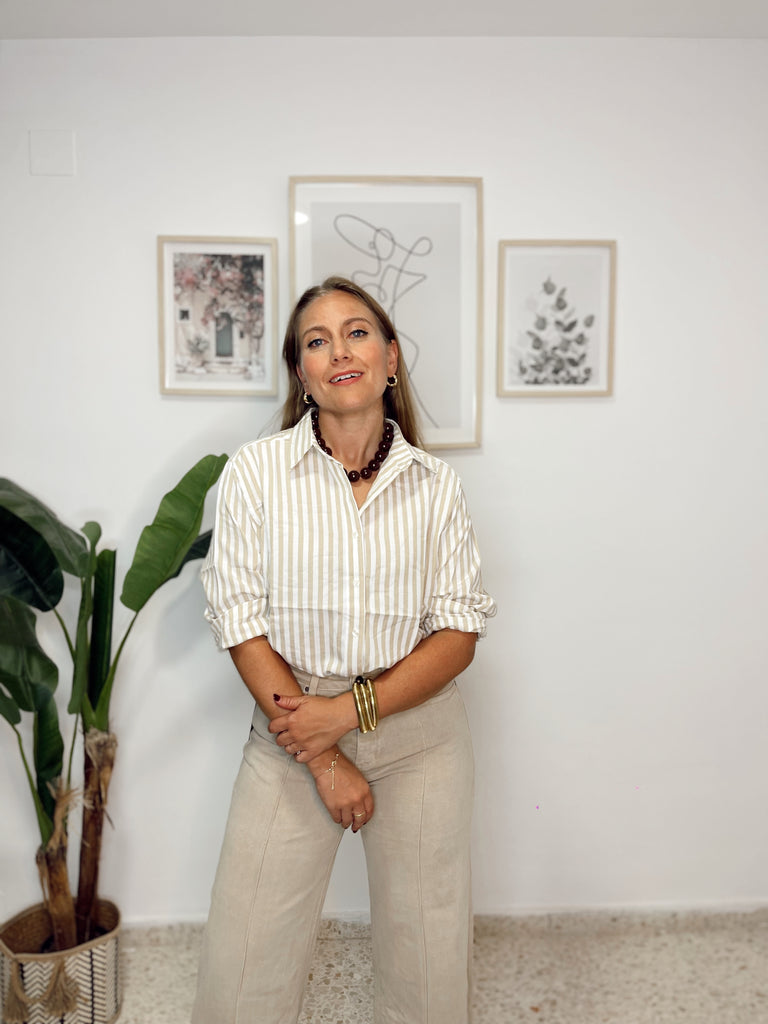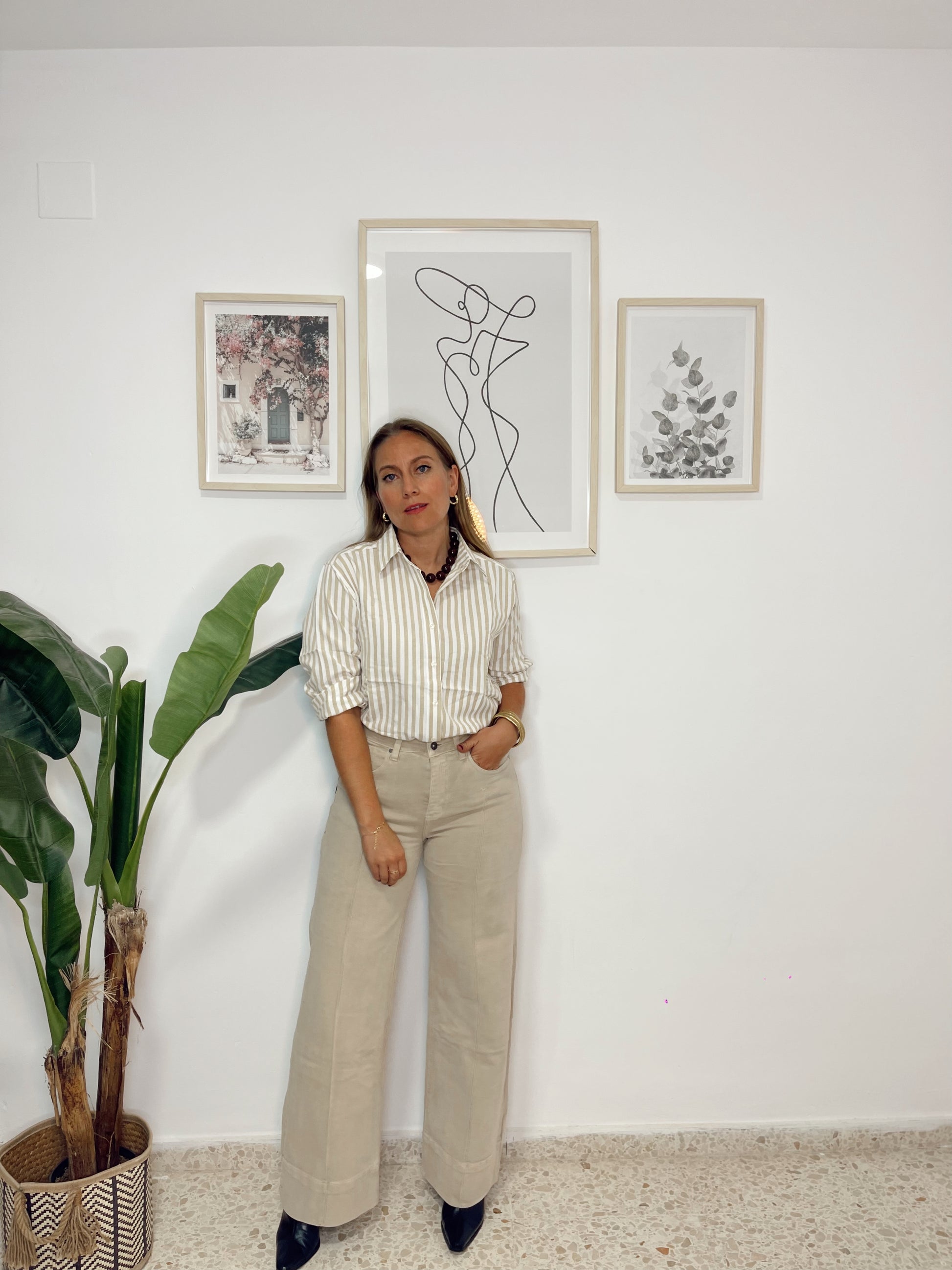 Camisa de rayas de algodón tejido suave y gustoso. Talla ligeramente amplio por eso recomendamos mirar la equivalencia de tallas que os especificamos.