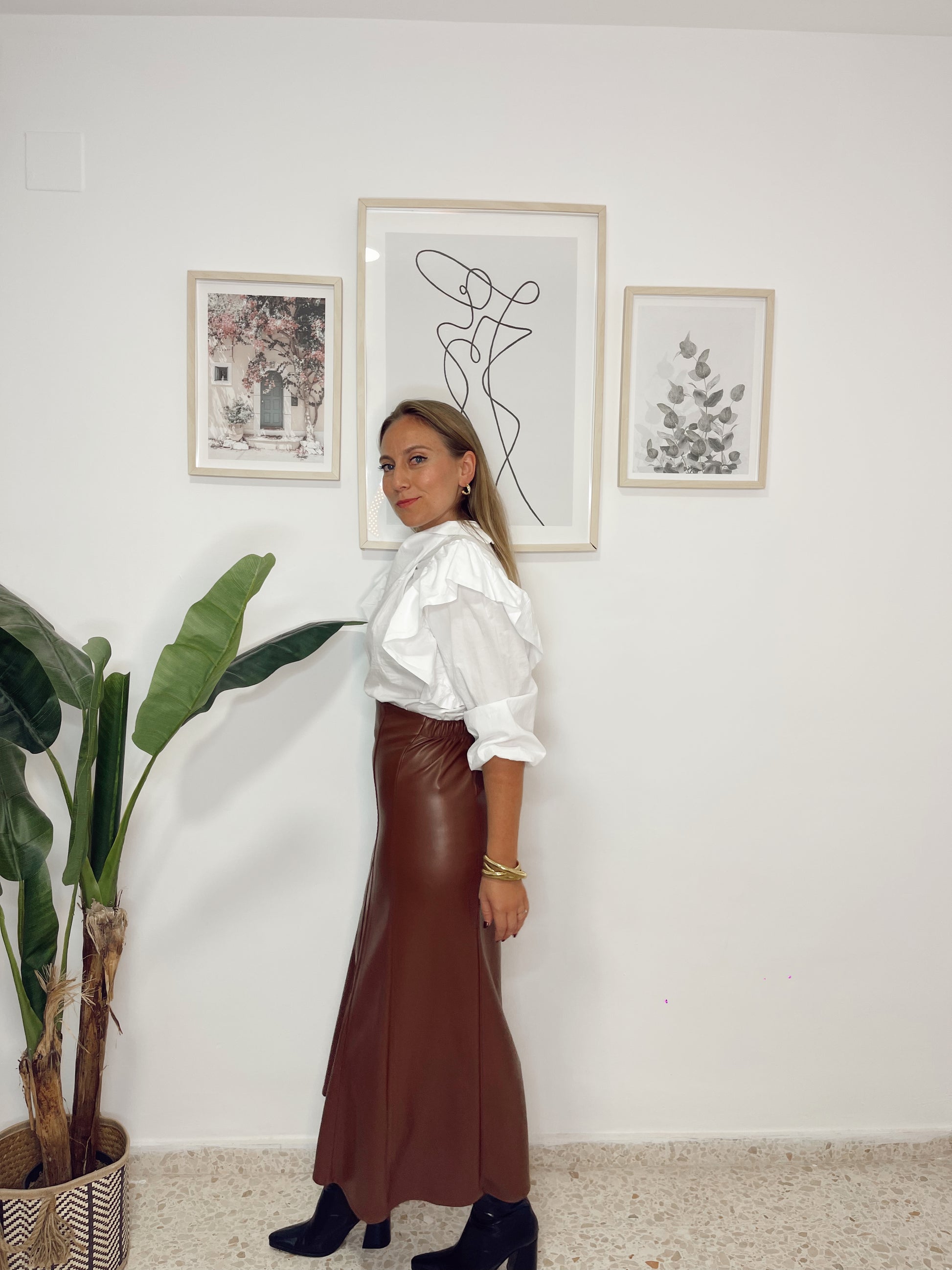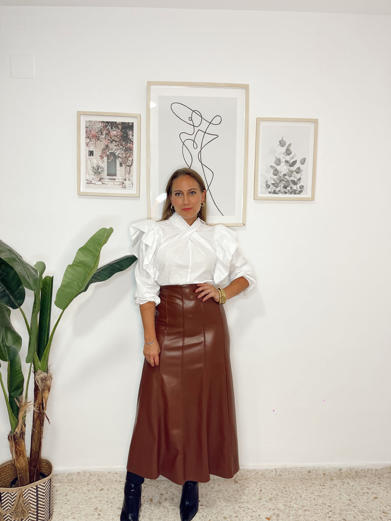 Falda efecto piel elástica marrón