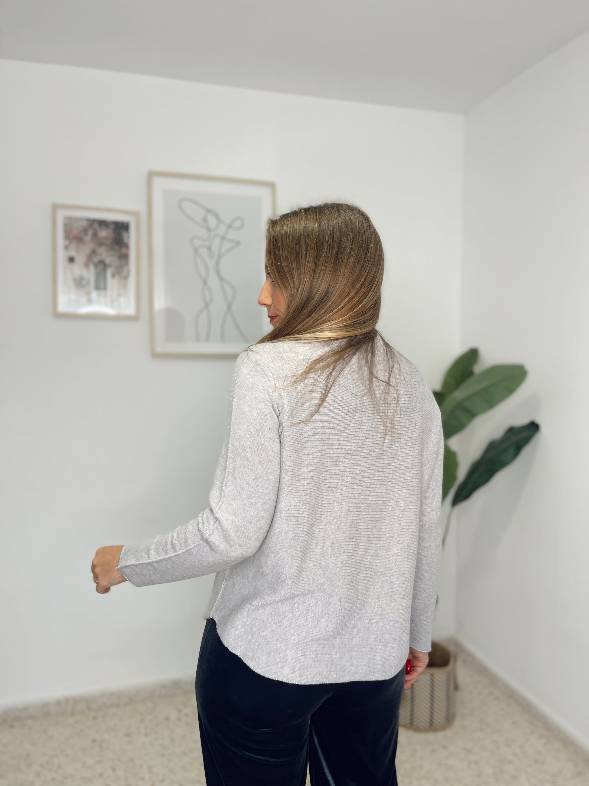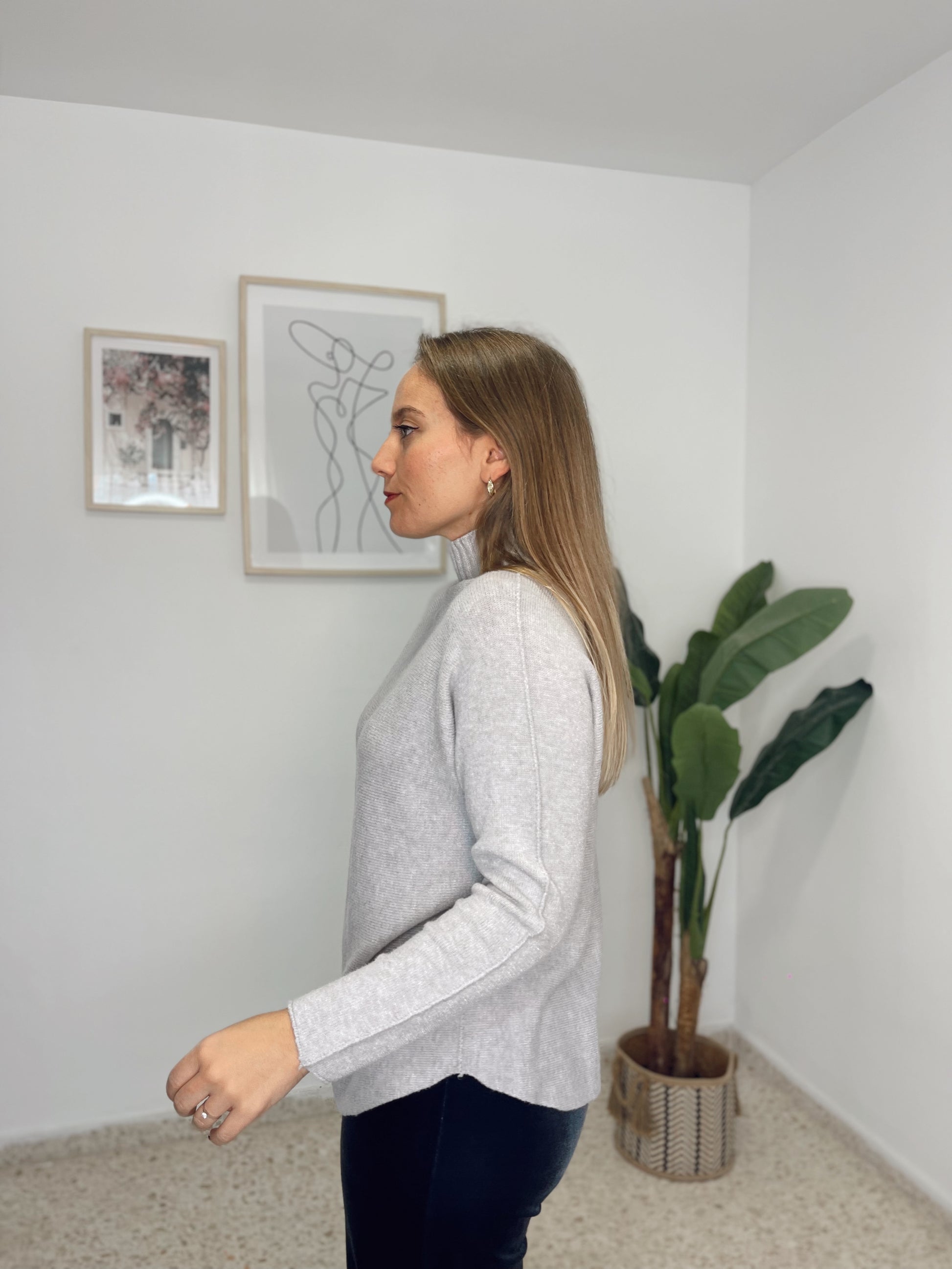 Jersey con tacto suave y gustoso, con cuello ligeramente alzado.