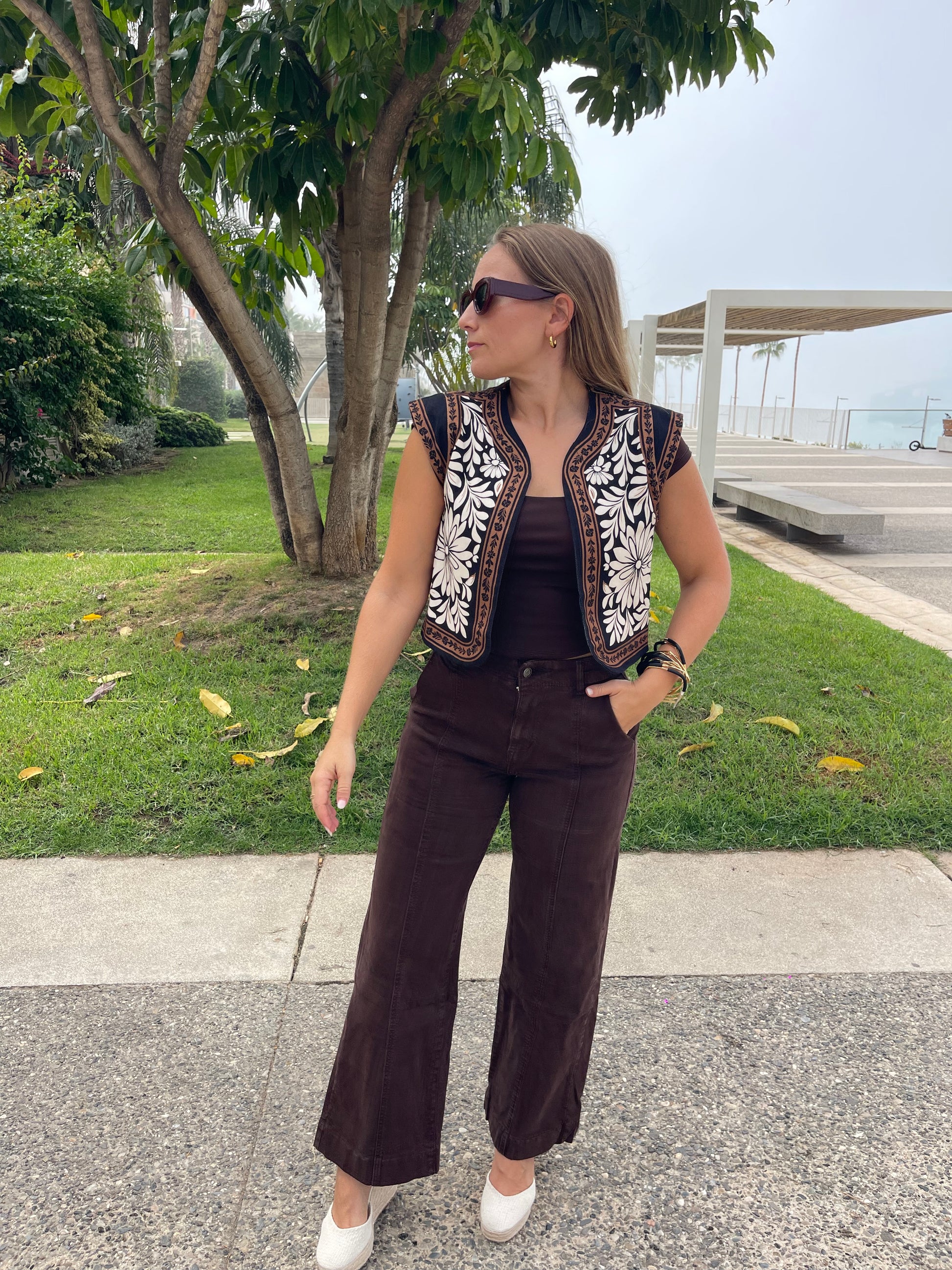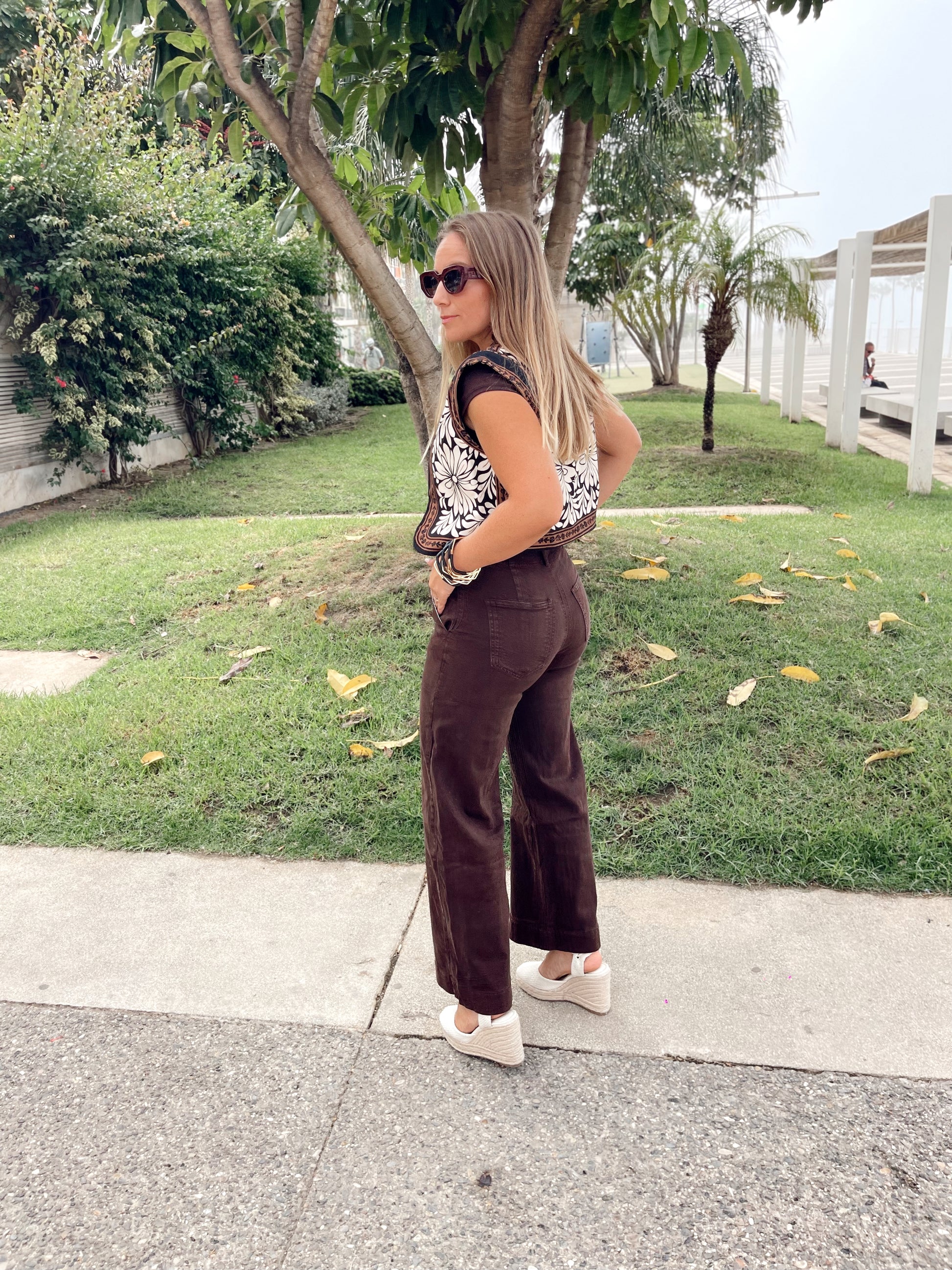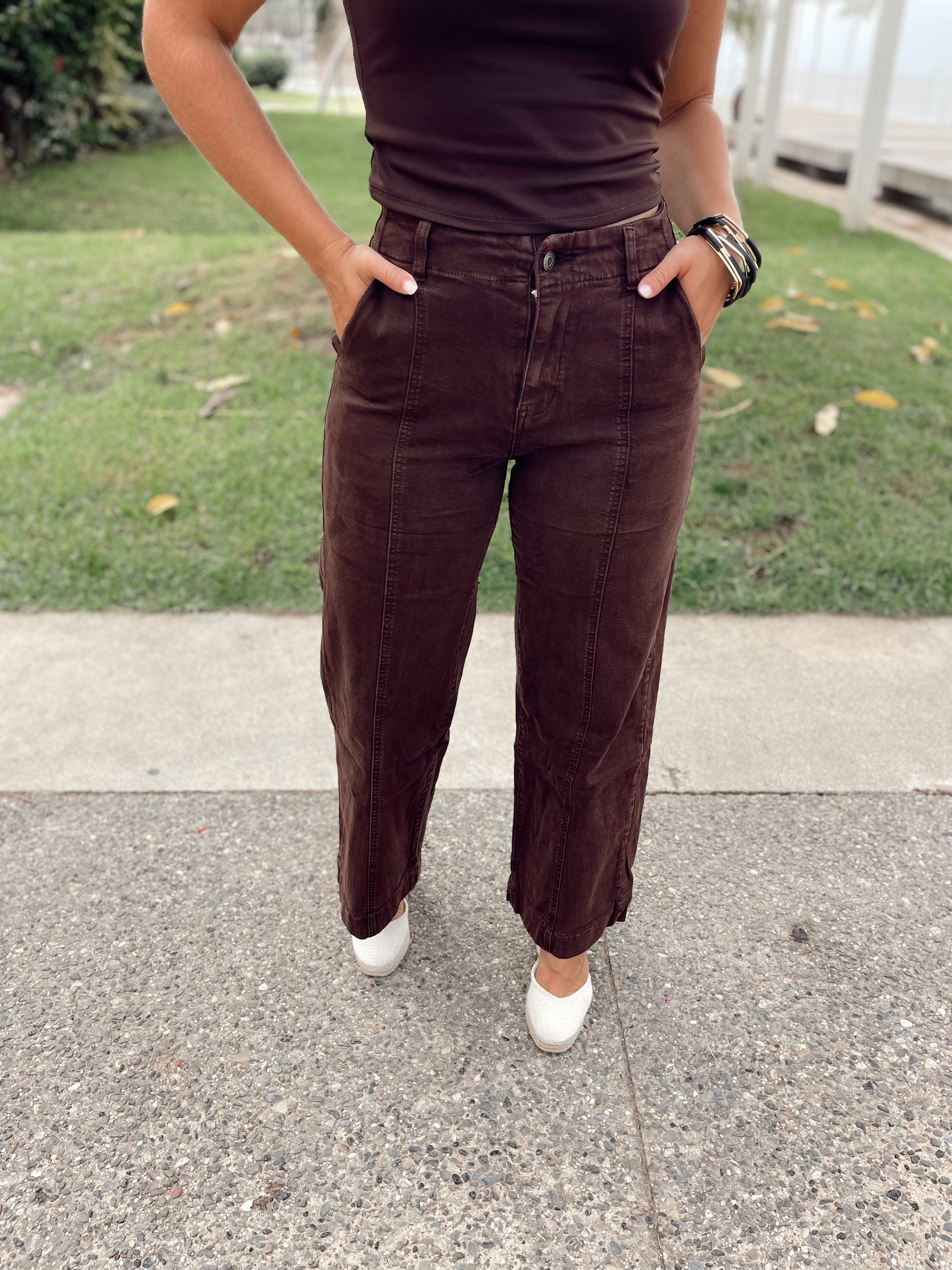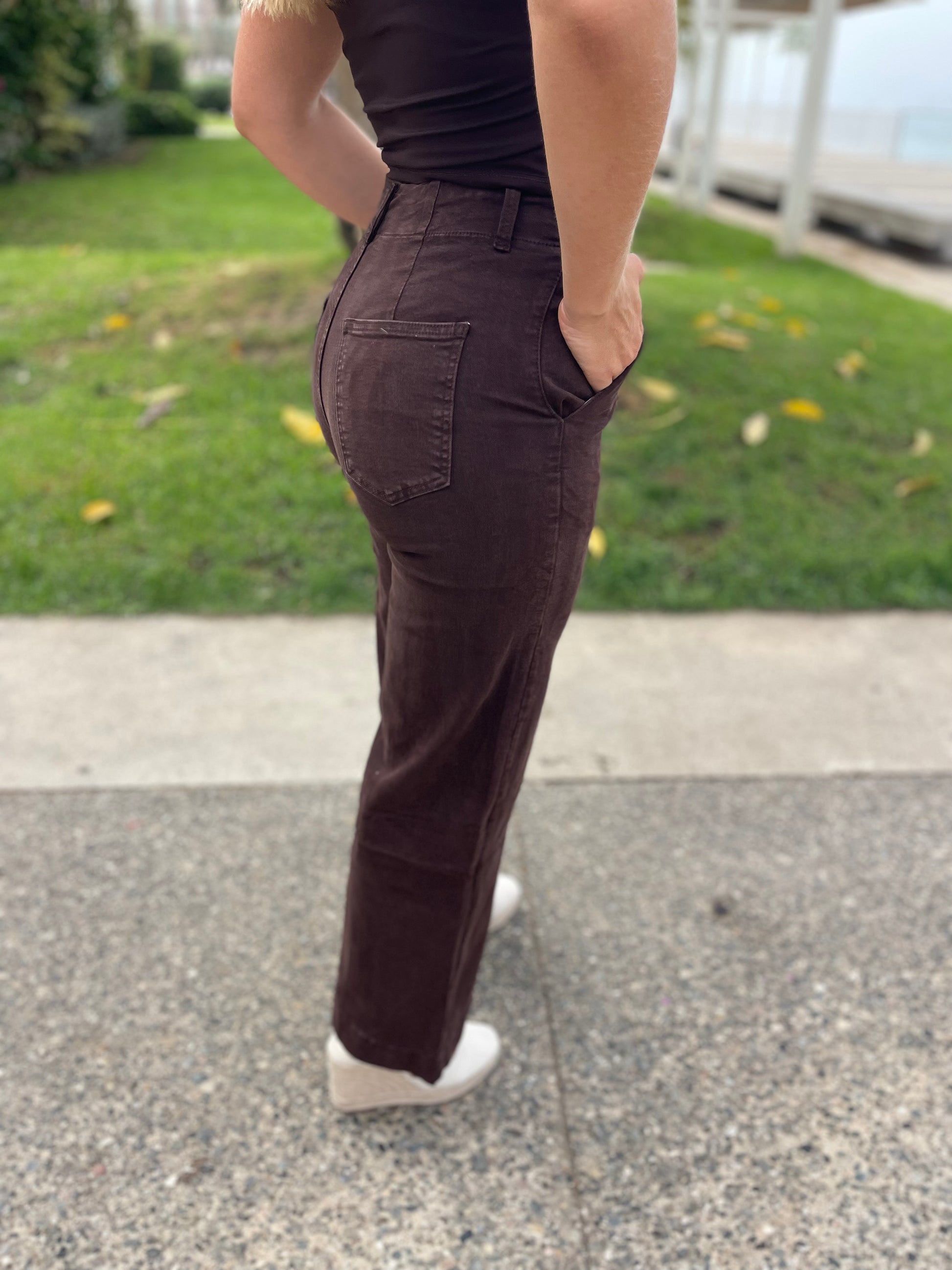 Vaquero tiro alto chocolate con cinturón