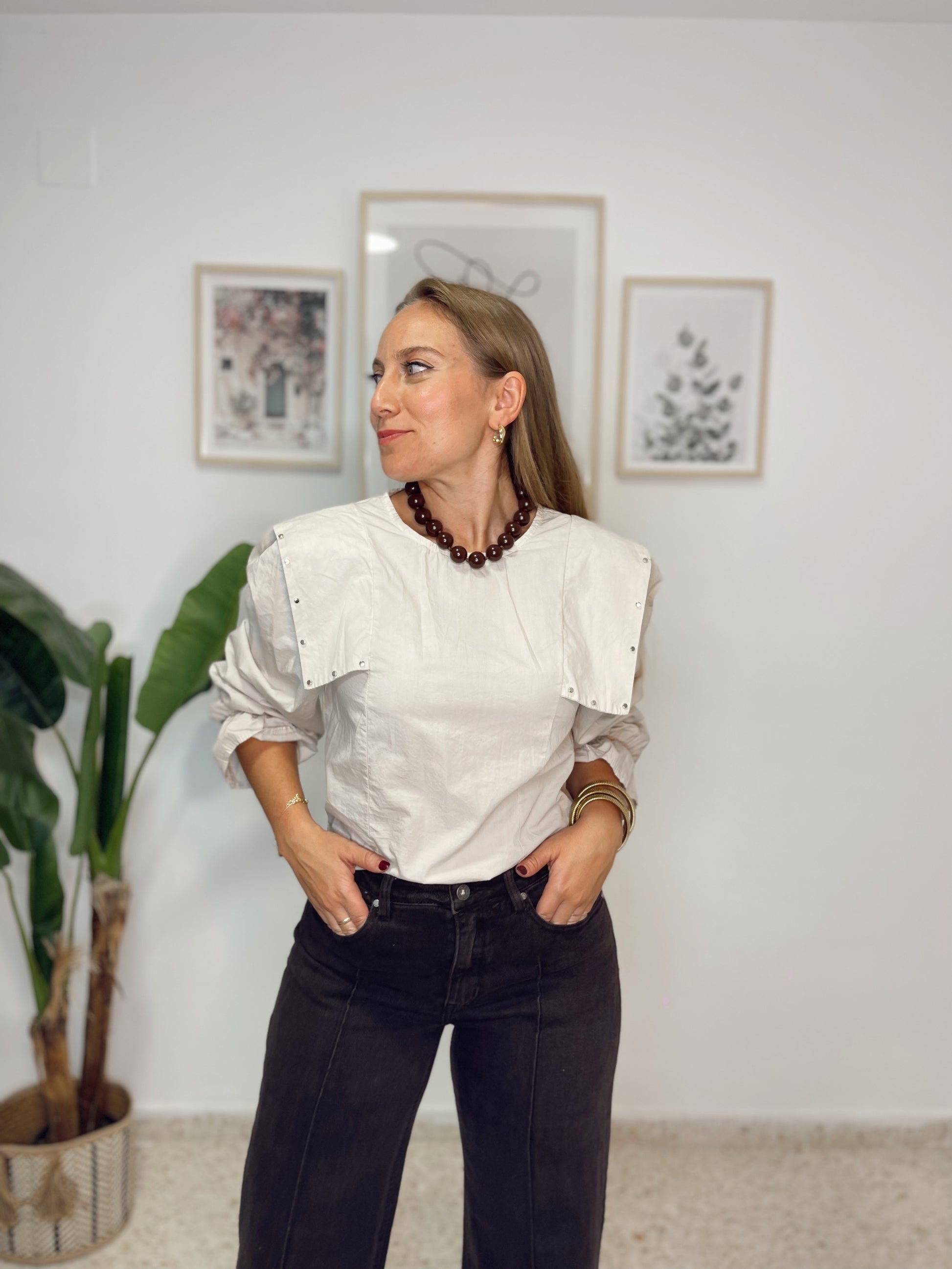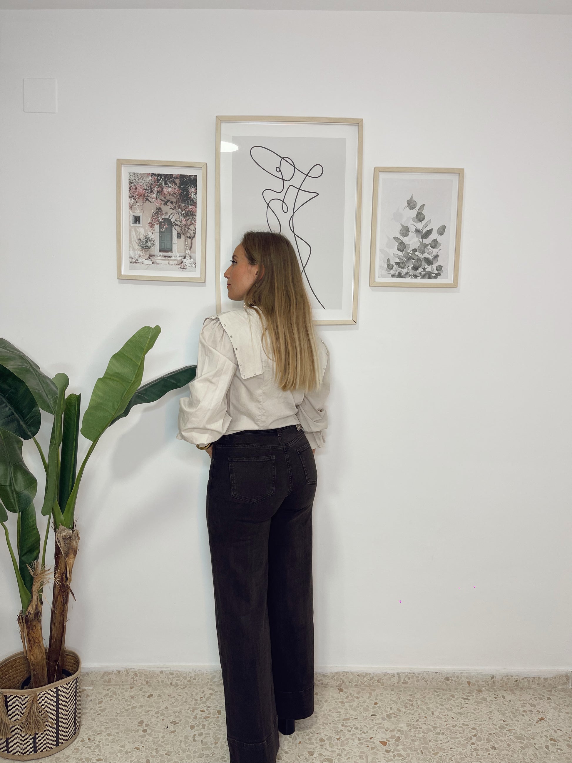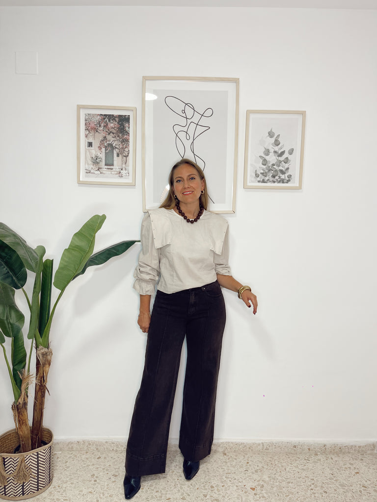Vaquero chocolate wide leg tiro alto linea y vespunte bajo