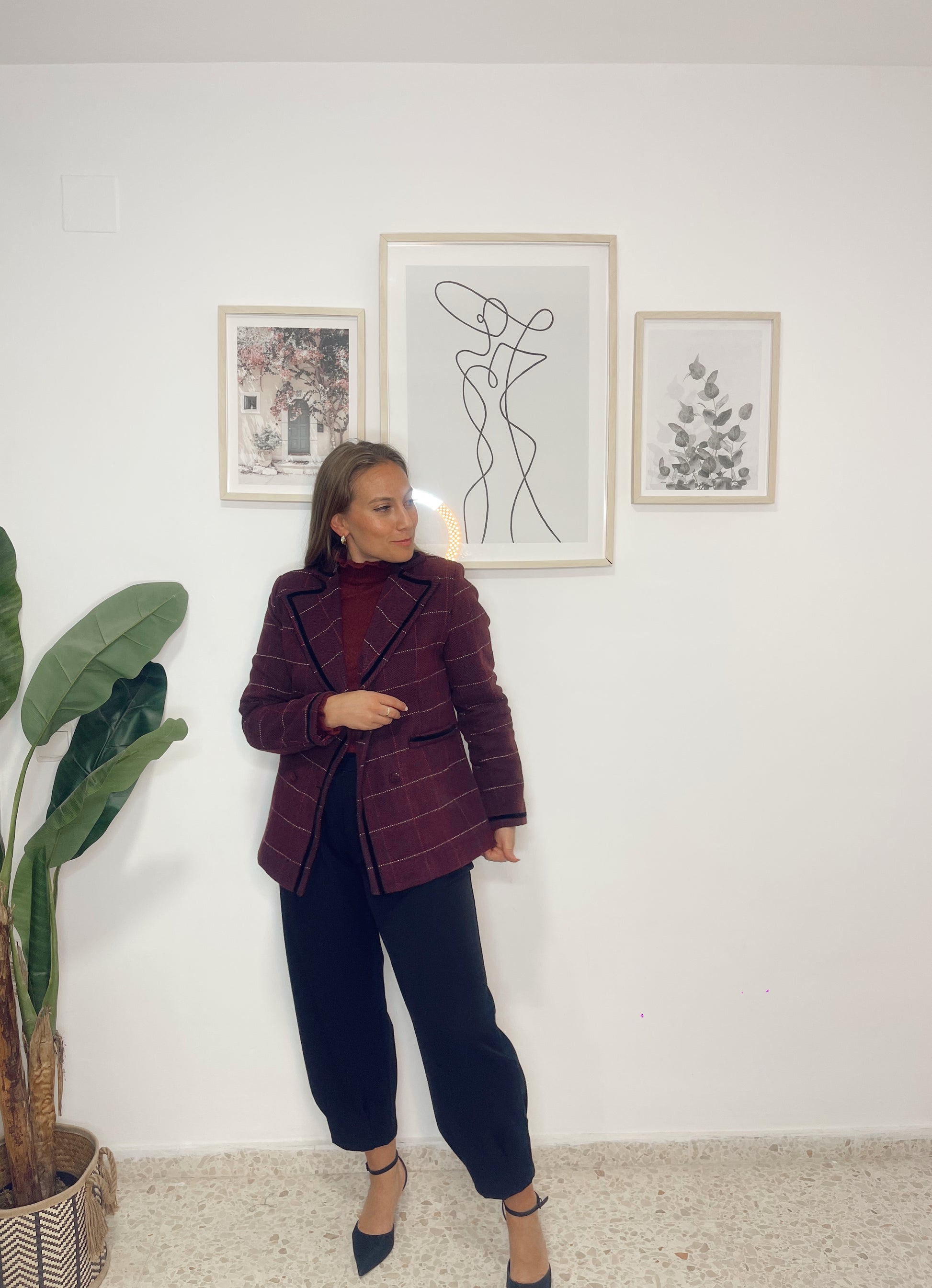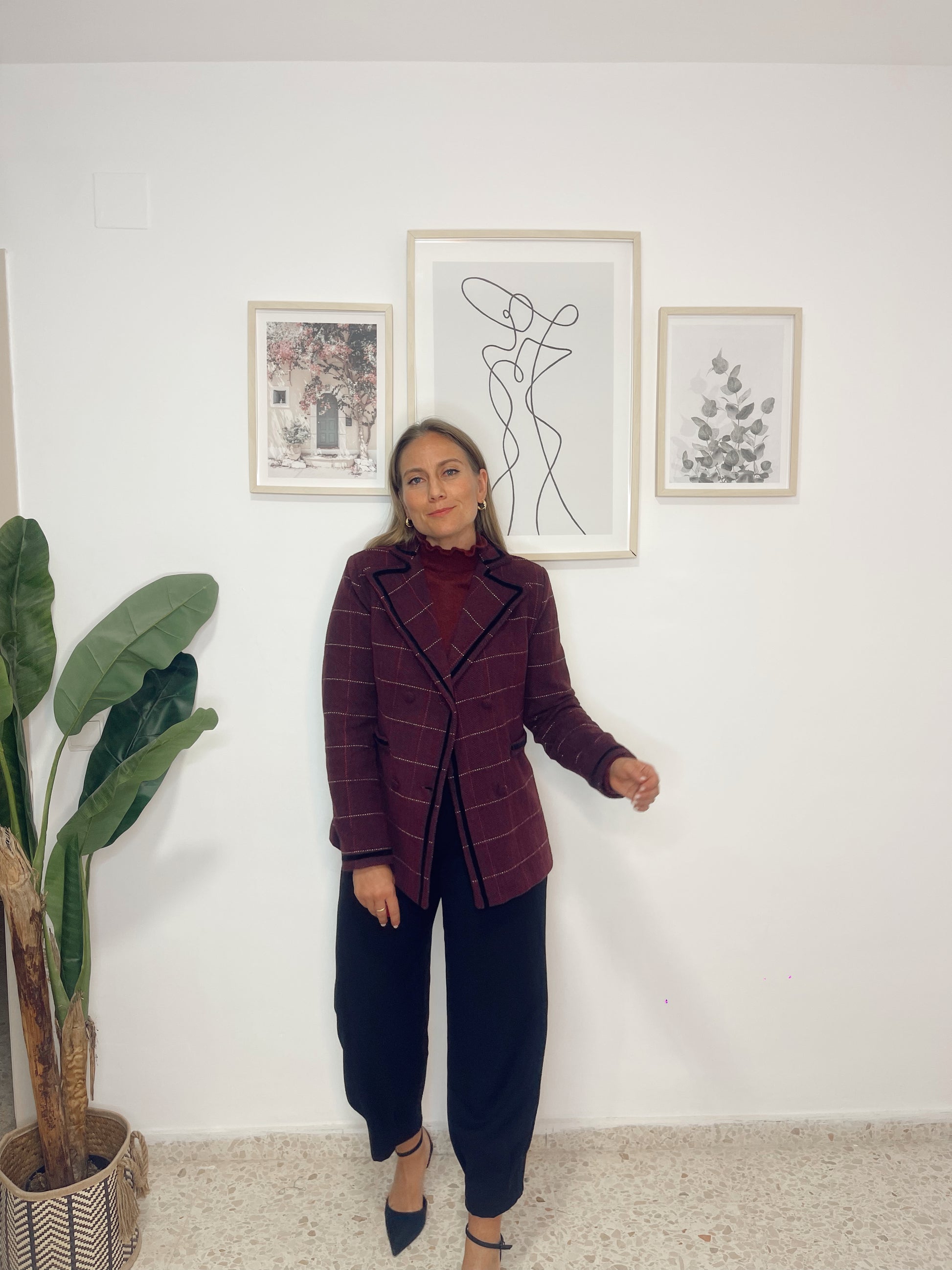 Chaqueta con hombreras,bordado ribete terciopelo y botones forrados